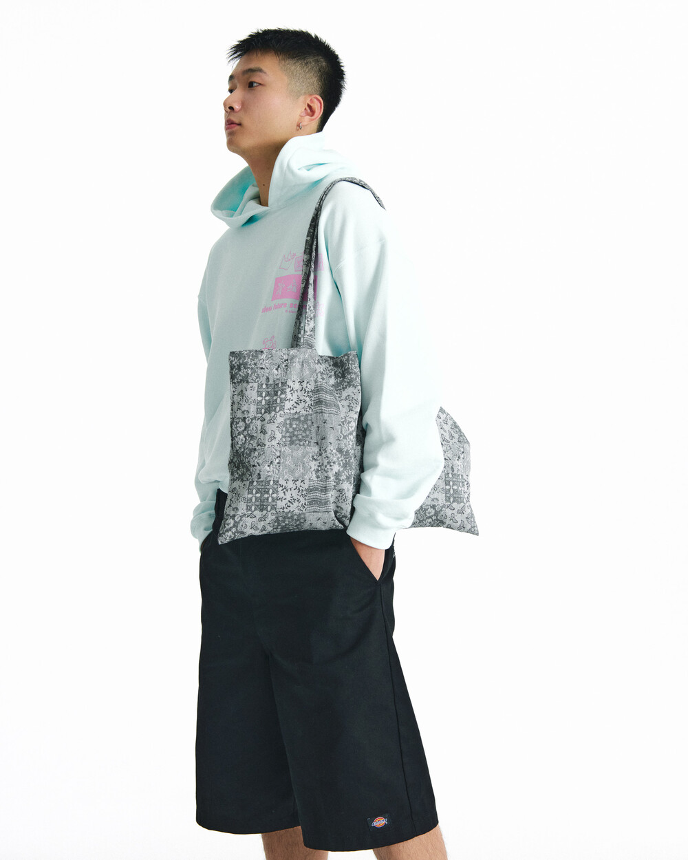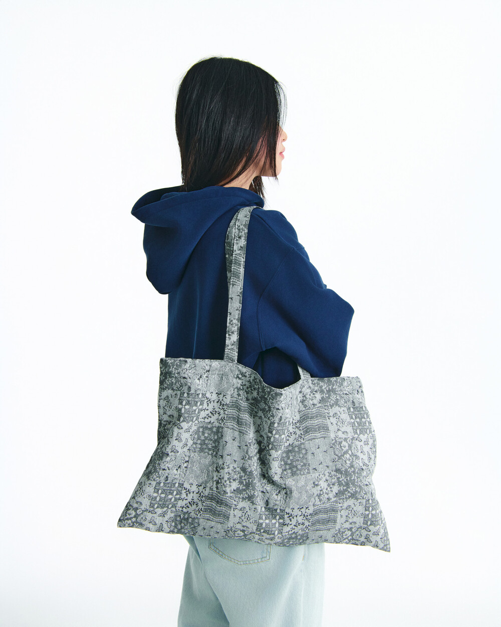 Soft jacquard fabric with clearly visible texture Fully lined for a light and structured shape All-over patchwork pattern with floral and paisley motifs Long shoulder straps for comfortable over-the-shoulder wear Spacious rectangular silhouette for everyday use
